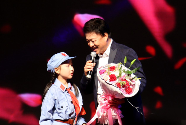 之后,著名歌唱家李丹阳演唱了代表作《红月亮》,新生代歌手周澎演唱《美丽中国走起来》,唱作人韩冰演唱了《少年行》。阚丽君会长压轴出场,作为主办方领导,她激动地说:“感谢艺术家们不辞辛苦来到老区,为大家奉上这么多精彩的节目,由于时间、经费有限,这次活动得到了各界的支持。看到孩子们的笑脸,我们倍感欣慰,希望这个特别的日子,为你们今后的健康成长助力,基金会将在革命老区落地更多的公益项目,建设艺术教育基地,为孩子们的全面发展贡献力量”,她随后献上歌曲《国花飘香》。