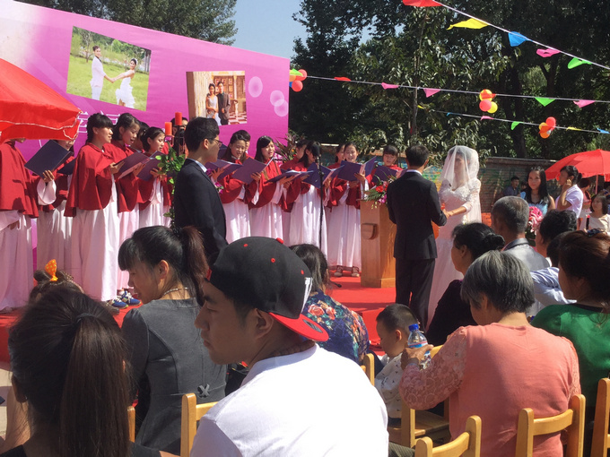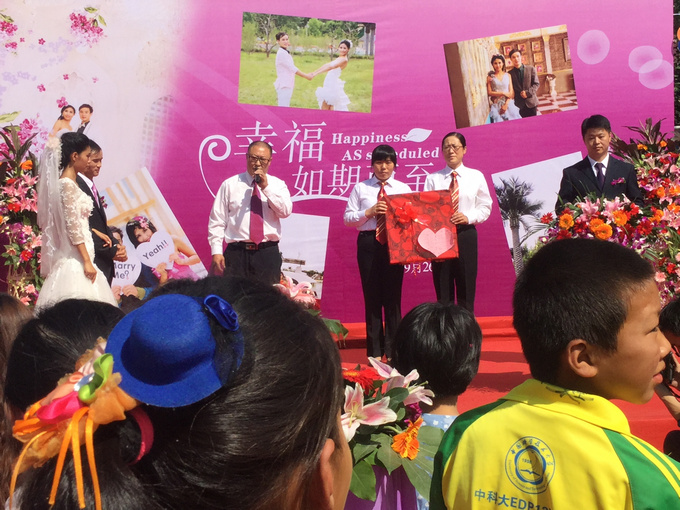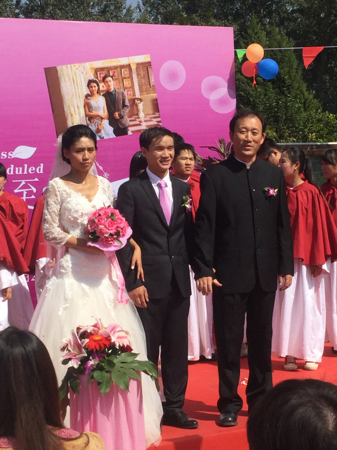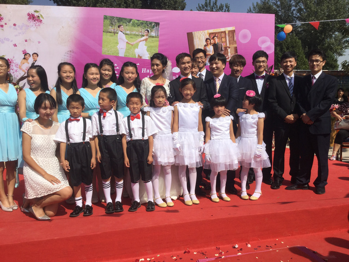 2015年9月26日上午,光爱学校的孩子丁啸(丁哥)与志愿者张爱灵(嫂子)举办婚礼,愿上帝祝福你们!你们的爱情如死之坚强,众水不能息灭,大水也不能淹没。