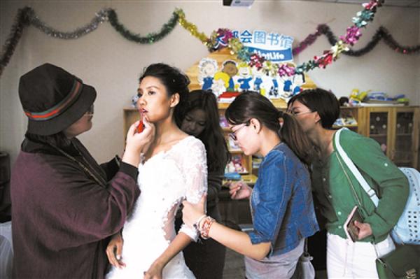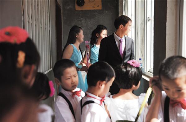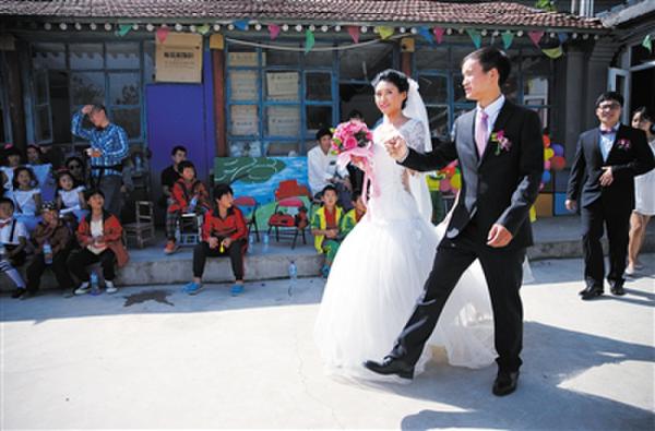 婚礼办在学校,丁啸感到很踏实。他说:“因为这里就是我的家”。